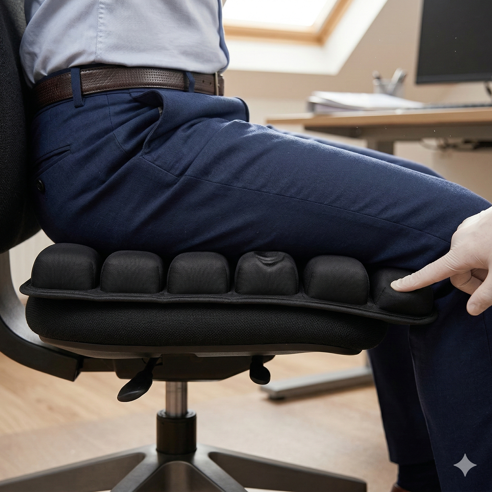 Pleaxit provides support from the base to help keep your spine naturally aligned while sitting. It protects the coccyx and reduces pressure on the lower back. From the first use, you’ll notice a more stable and comfortable sitting position.